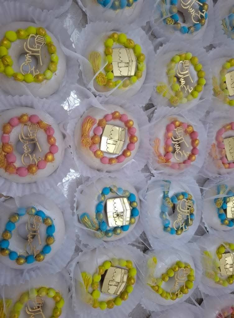 زينتها بعجينة السكر وهي سبحة بثلاثة الوان