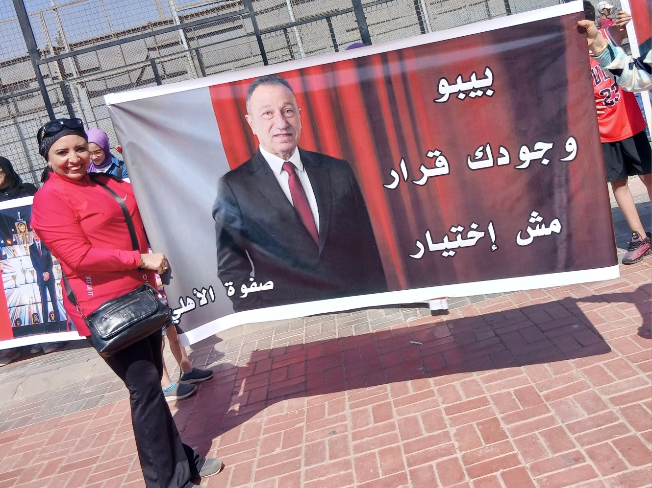 بيبو “وجودك قرار مش إختيار” أعضاء الأهلي تتجمهر باللافتات في حب الخطيب .