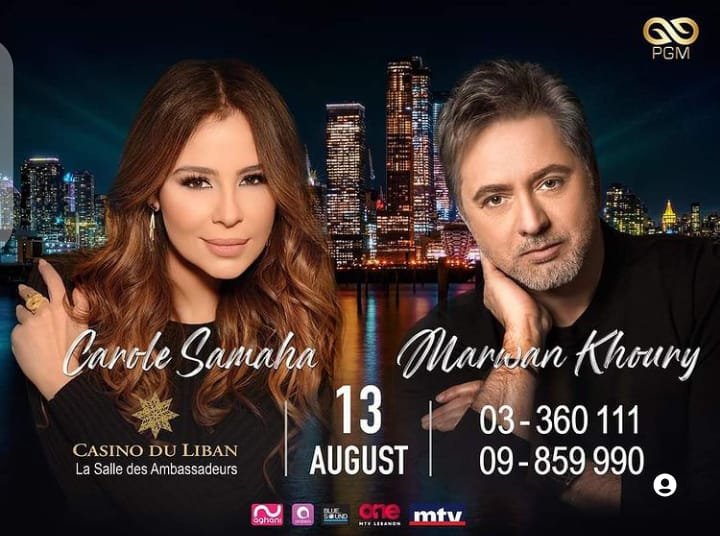 حيث قامت “كارول سماحة” بمشاركة جمهورها بنشر صوره لها مع المطرب “مروان خوري”، كما نشرت كذلك فيديو كليب لهما من أغنية ديتو بينهما، وذلك على موقع تبادل الصور والفيديوهات “الإنستجرام”، وقد علقت عليهم قائلة: “رح نلتقي بحفل رومانسي ساحر.. ليلة السبت 13 أغسطس، بكازينو لبنان صالة السفراء، تنظيم شركة pgm”.