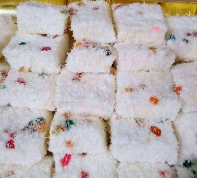 المقادير كلها علي بعض ونقلب وعلي نار هادئة جدا لمدة ١٢ دقيقة ننزل بجوز الهند علي العود ونقلب وفي صنية مدهونة زيت جوز الهند او زيت ذرة ننزل باللاديدة بتاعتنا ونضغط ونساوي الاطراف وبعد دقيقتين نبتدي نقطعها الشكل اللي تحبوة مدور بالقطاعة او مستطيل كدة بالسكينة عادي خالص وانا كمان شكلتها علي شكل كور صغيرة بالشكل اللي حضراتكوا شفتوة وبالف هنا علي قلوبكم.