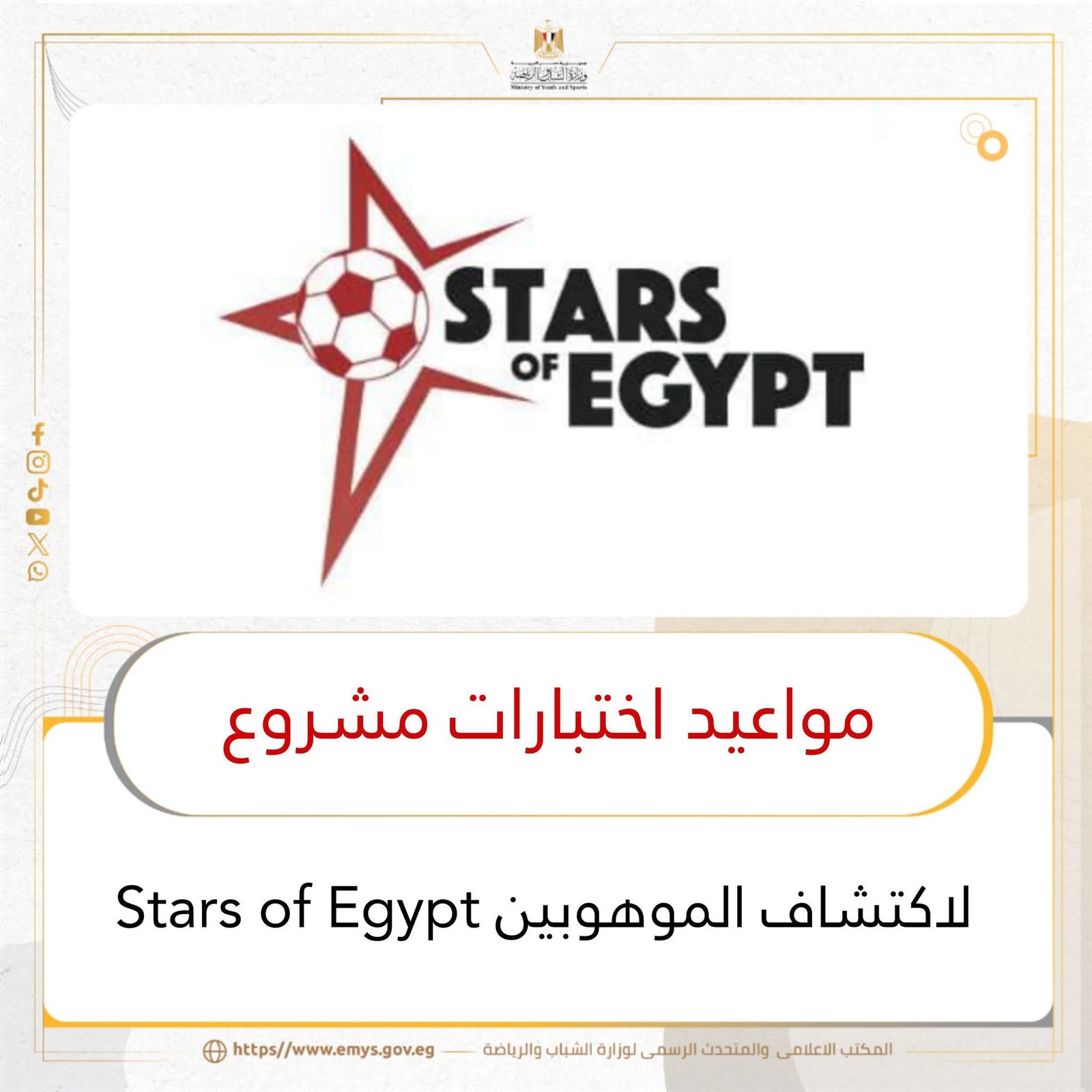 تحت رعاية وزارة الشباب والرياضة: إعلان تفاصيل اختبارات مشروع “Stars of Egypt” القومي خلال إجازة نصف العام