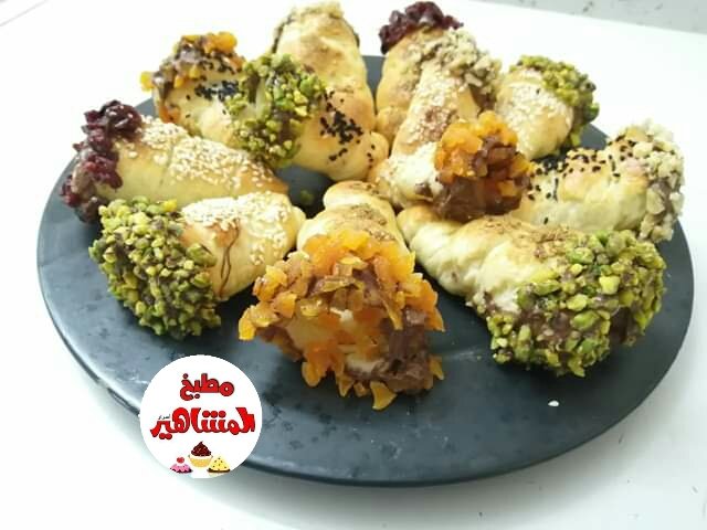 العجين مدة ساعة على الاقل ومن ثم نشكل العجينة بواسطة اقماع ونلف العجينة على الاقماع ونتركه تختمر فترة بسيطة ثم ندخله الفرن المجهز مسبقا ونتركه الى ان تاخذ اللون الذهبي بعد ذلك نتركه تبرد ثم نحشيه بالنوتيلا والمكسرات او فواكه مجففة او حسب الرغبة تكون الحشوة والتزين