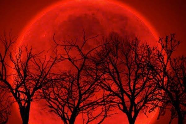 عندما يصبح القمر داخل منطقة الظل بالكامل ويتحول إلى اللون الأحمر.