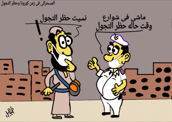 رسمت بريشة الفنان أحمد جميل كاريكاتير ساخرا عن بمناسبة شهر رمضان كريم و انتشار فيروس كورونا في البلاد و العالم حيث حظر التجول تحرك كل المواطنين في الأماكن العامة و الحدائق لحماية مواجهة انتشار فيروس كورونا التي أثرت سلباً على العالم
