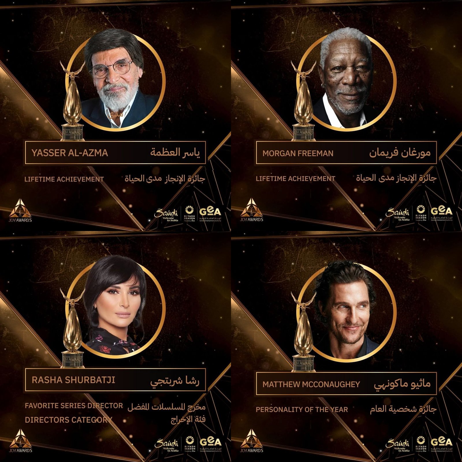 تم تكريم النجم العالمي مورجان فريمان بجائزة الإنجاز مدى الحياة، إلى جانب أساطير مثل أندريا بوتشيلي وهانز زيمر. كما كان للفن العربي نصيب وافر، مع تكريم الرواد ياسر العظمة وعبدالله الرويشد.