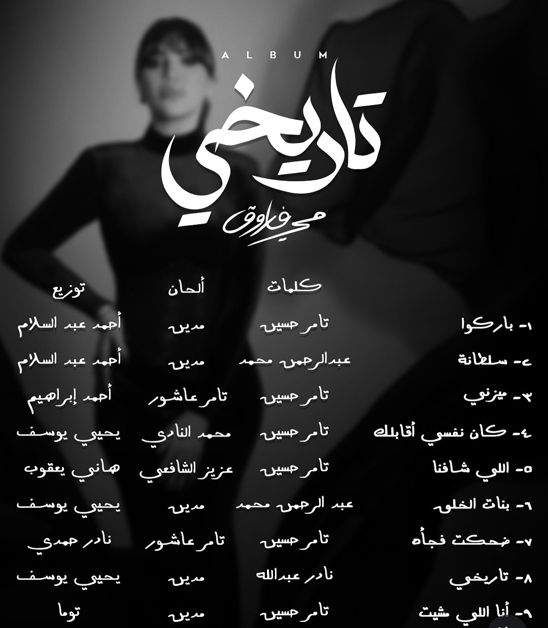 أغنية “تاريخي”، كلمات نادر عبدالله ، ومن ألحان مدين توزيع موسيقي و ميكس وماستر يحيى يوسف، وشارك في الهندسة الصوتية مصطفى رؤوف، ومن إنتاج وتوزيع شركة “ديجيتال ساوند”.